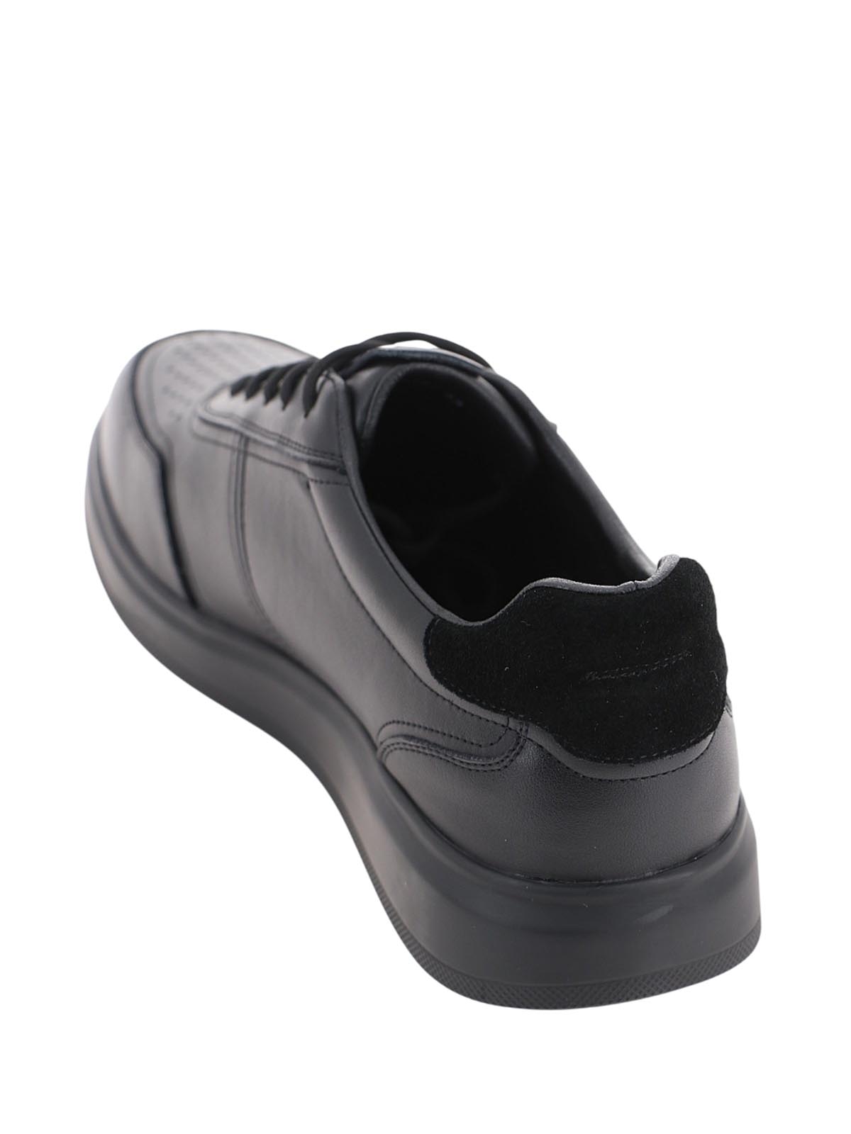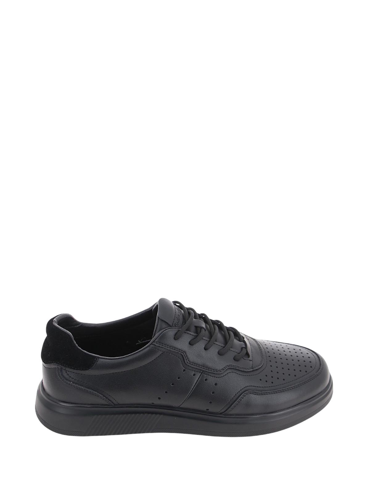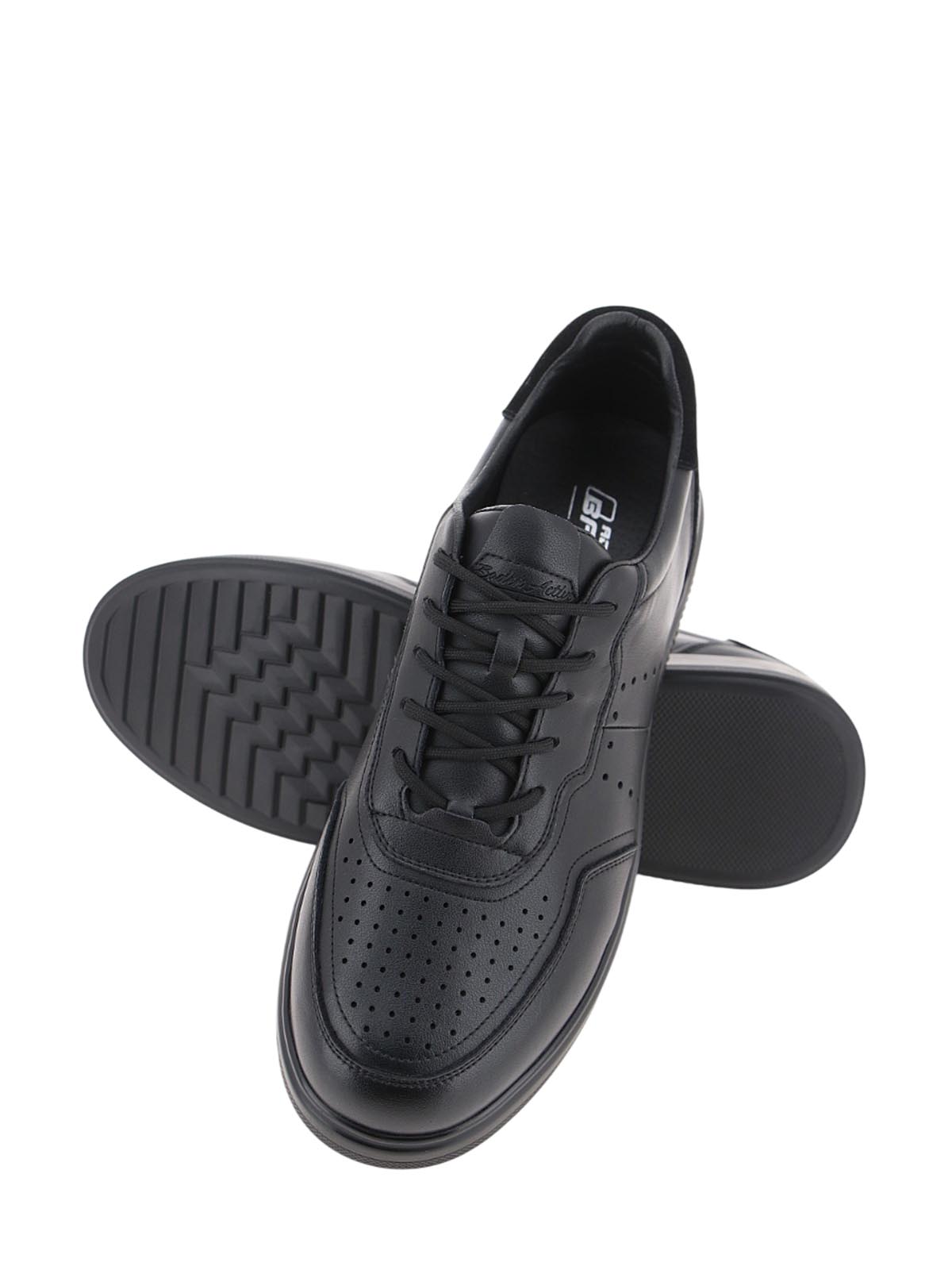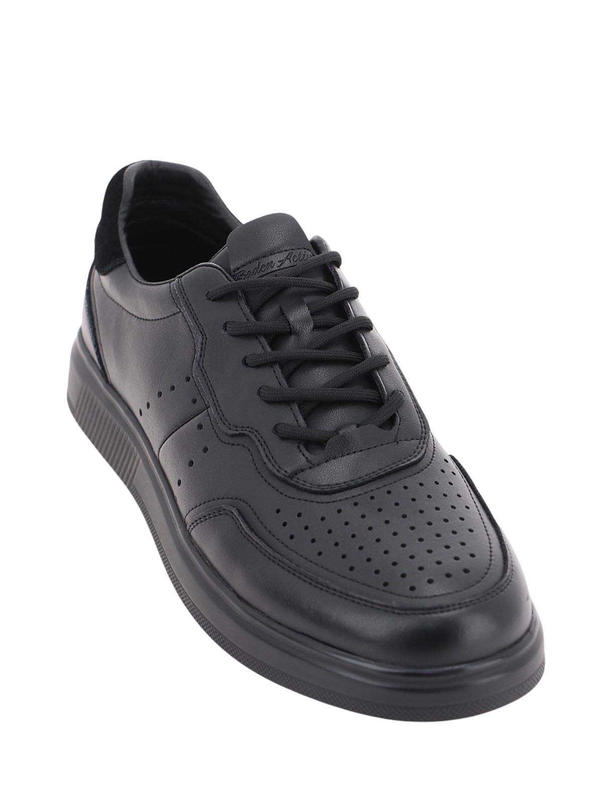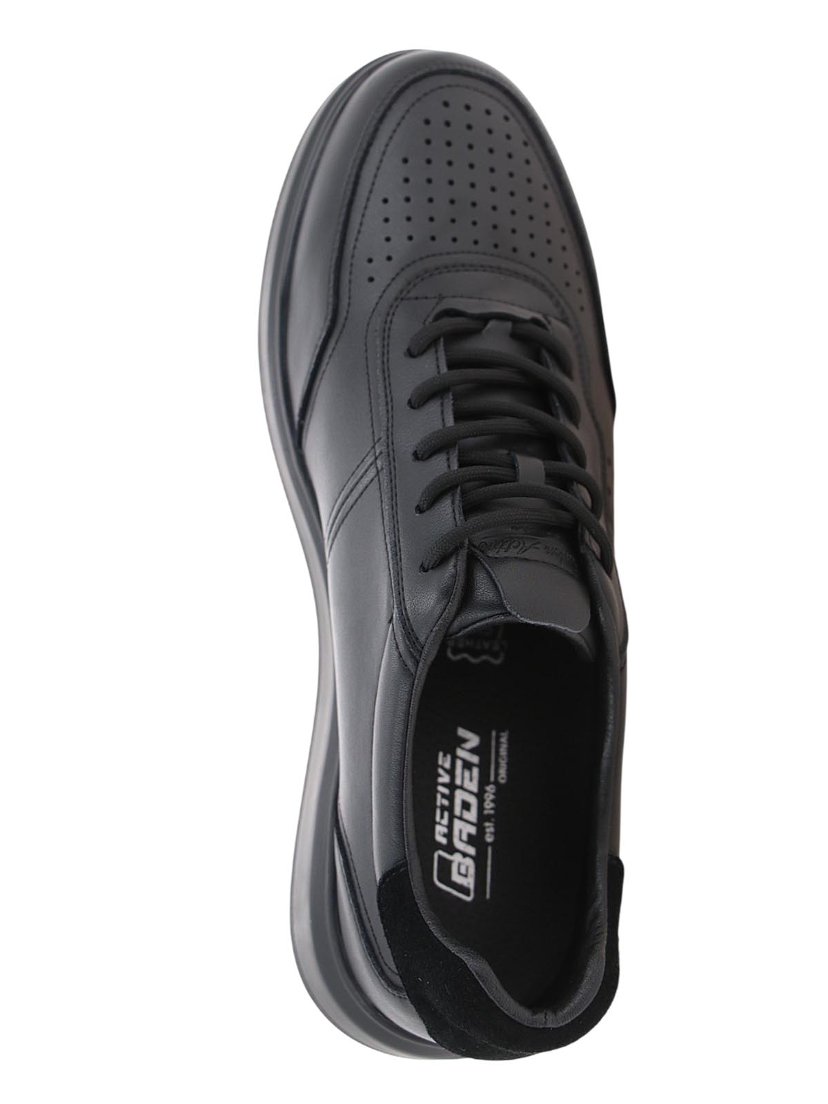 Мужские полуботинки BADEN в спортивном стиле для повседневной носки. Модель черного цвета с классическим силуэтом дополнена перфорацией на носке, создающей выразительный акцент и обеспечивающей дополнительную вентиляцию.