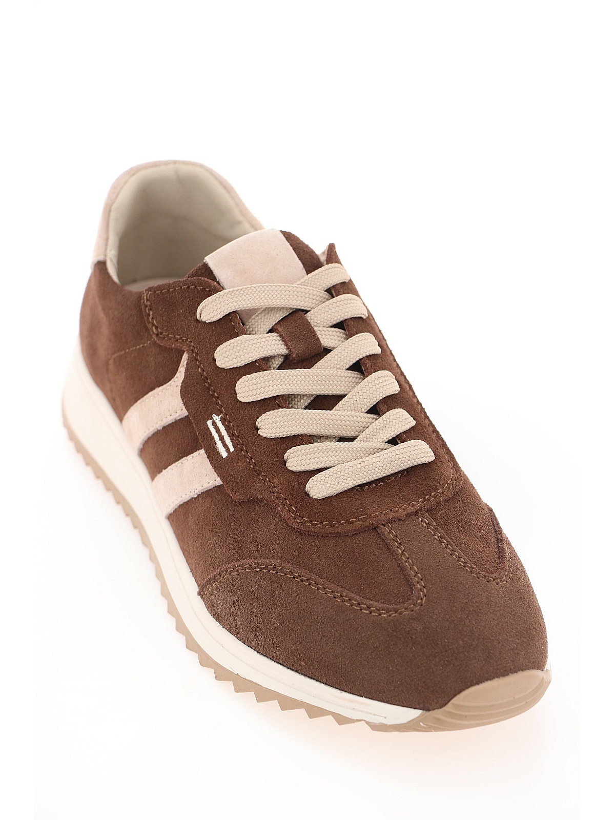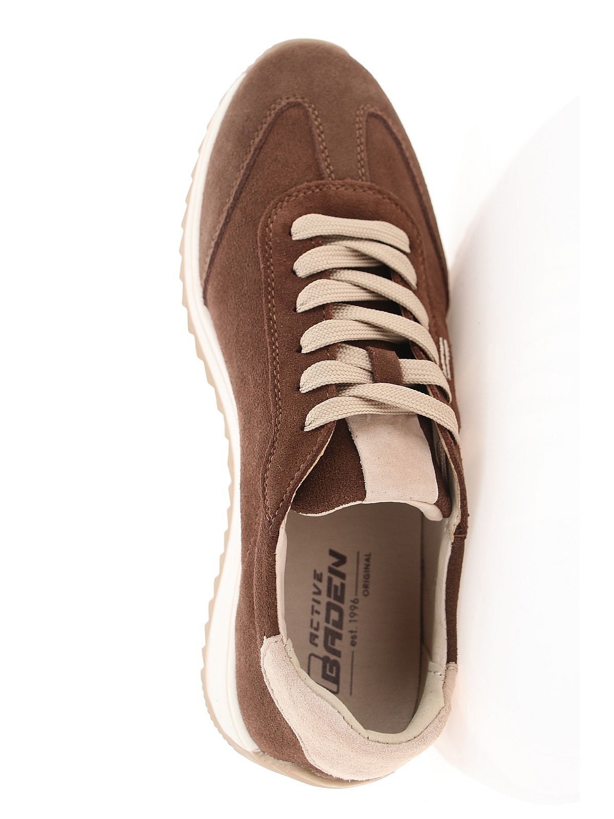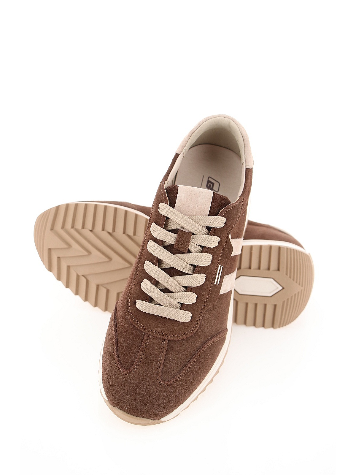 Женские кроссовки BADEN в классическом повседневном стиле. Модель коричневого цвета с бежевыми полосками сочетает лаконичный дизайн и комфорт для ежедневной носки.