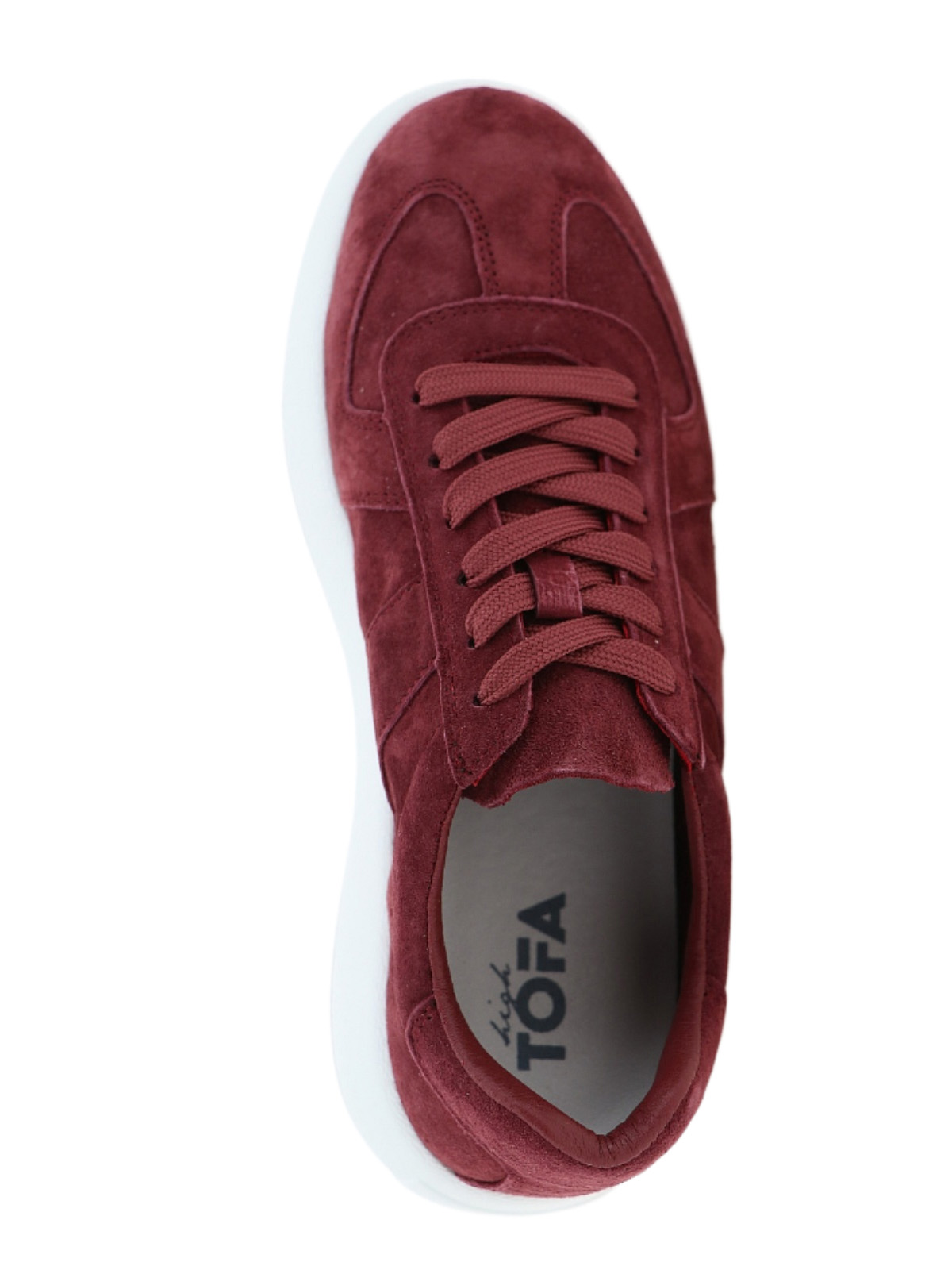 Женские кеды TOFA в бордовом цвете. Кеды из натуральной кожи (велюра) со шнуровкой, на толстой подошве из полиуретана. Практичная базовая модель - идеальна для работы, школы, прогулок по городу. оптом в Нижнем Новгороде